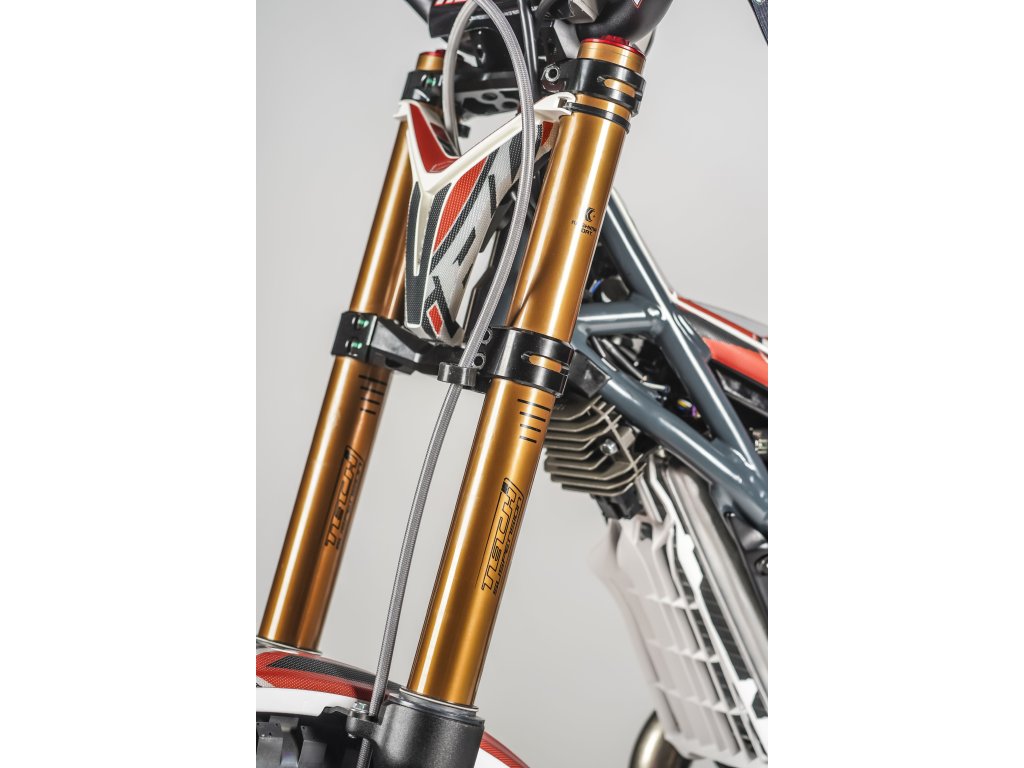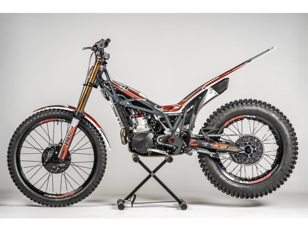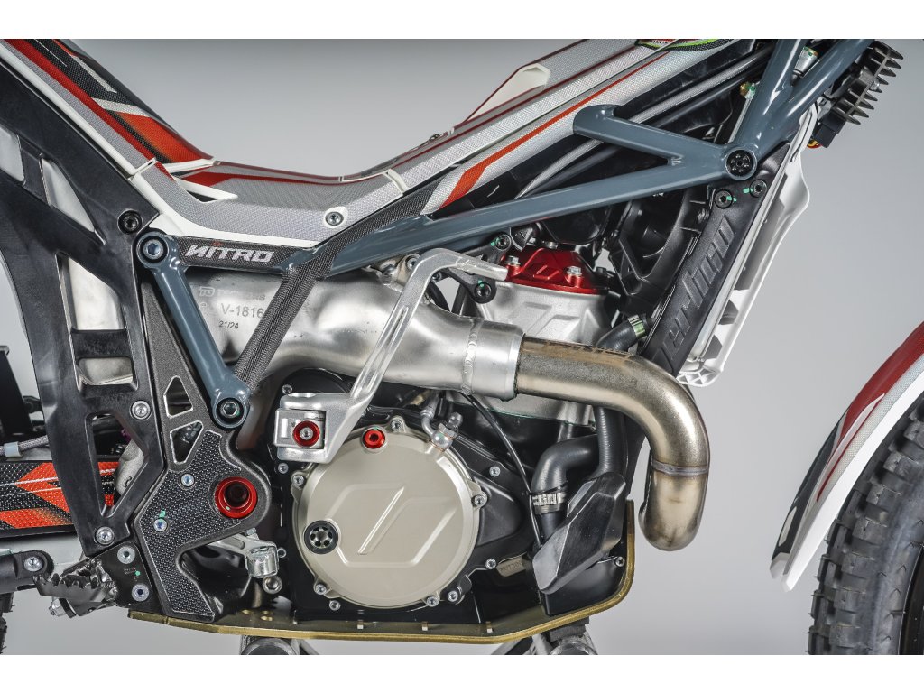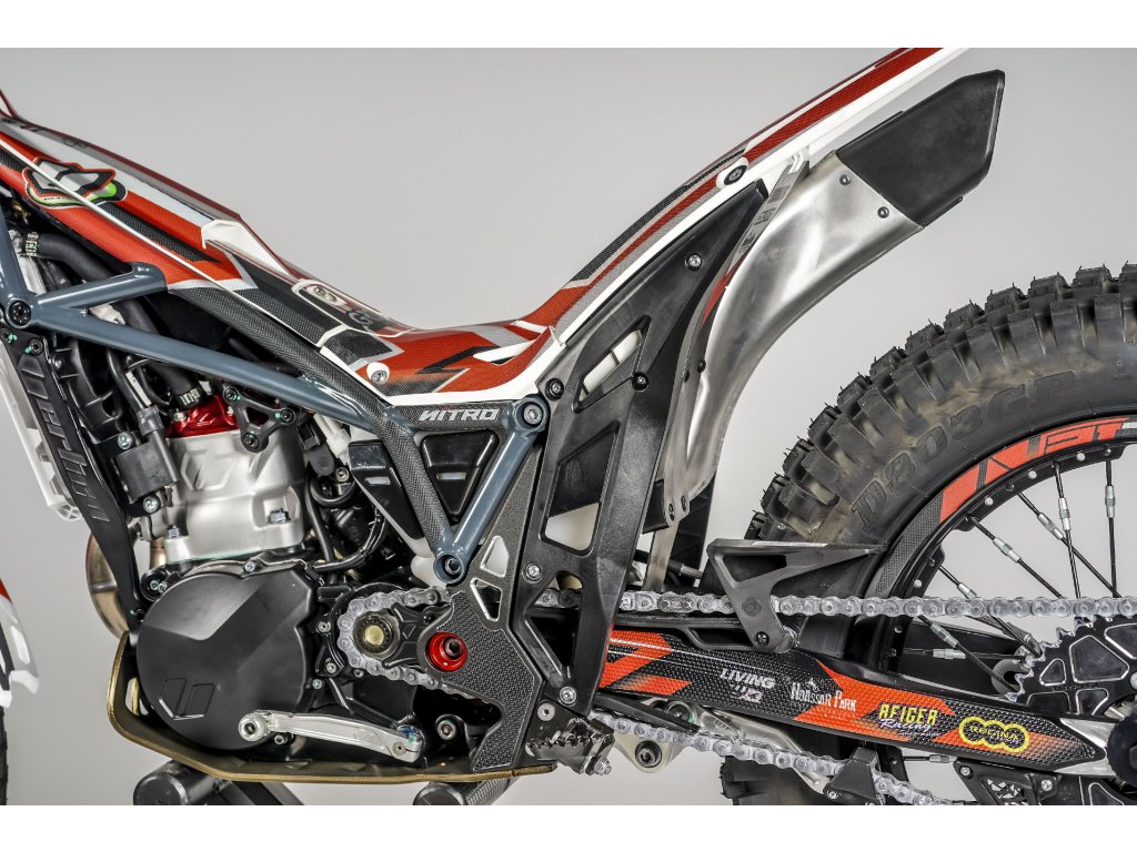 Vertigo Nitro RS3 DL12 je vybaveno prémiovými podvozkovými komponenty: nová přední vidlice Tech s povrchovou úpravou Kashima, která přináší lepší plynulost chodu a vyšší výkon a zadní tlumič Reiger, jenž je etalonem v trialovém odvětví. Nové ocelové stupačky a pedály S3 s optimalizovanými hroty zlepšují ovladatelnost a zpětnou vazbu v náročných podmínkách.